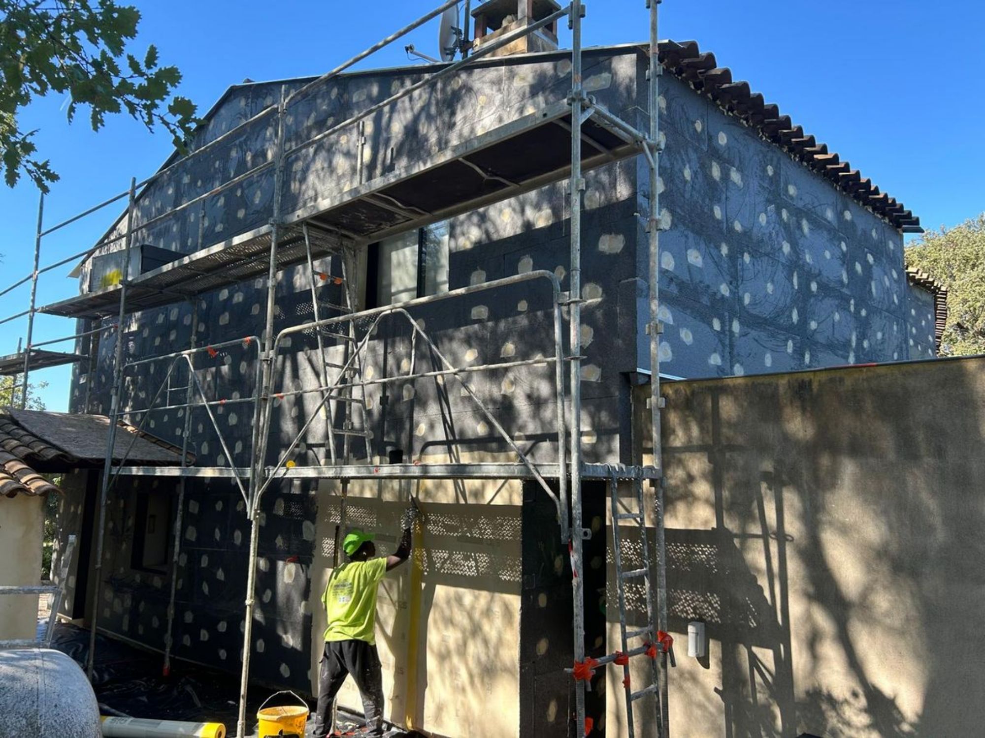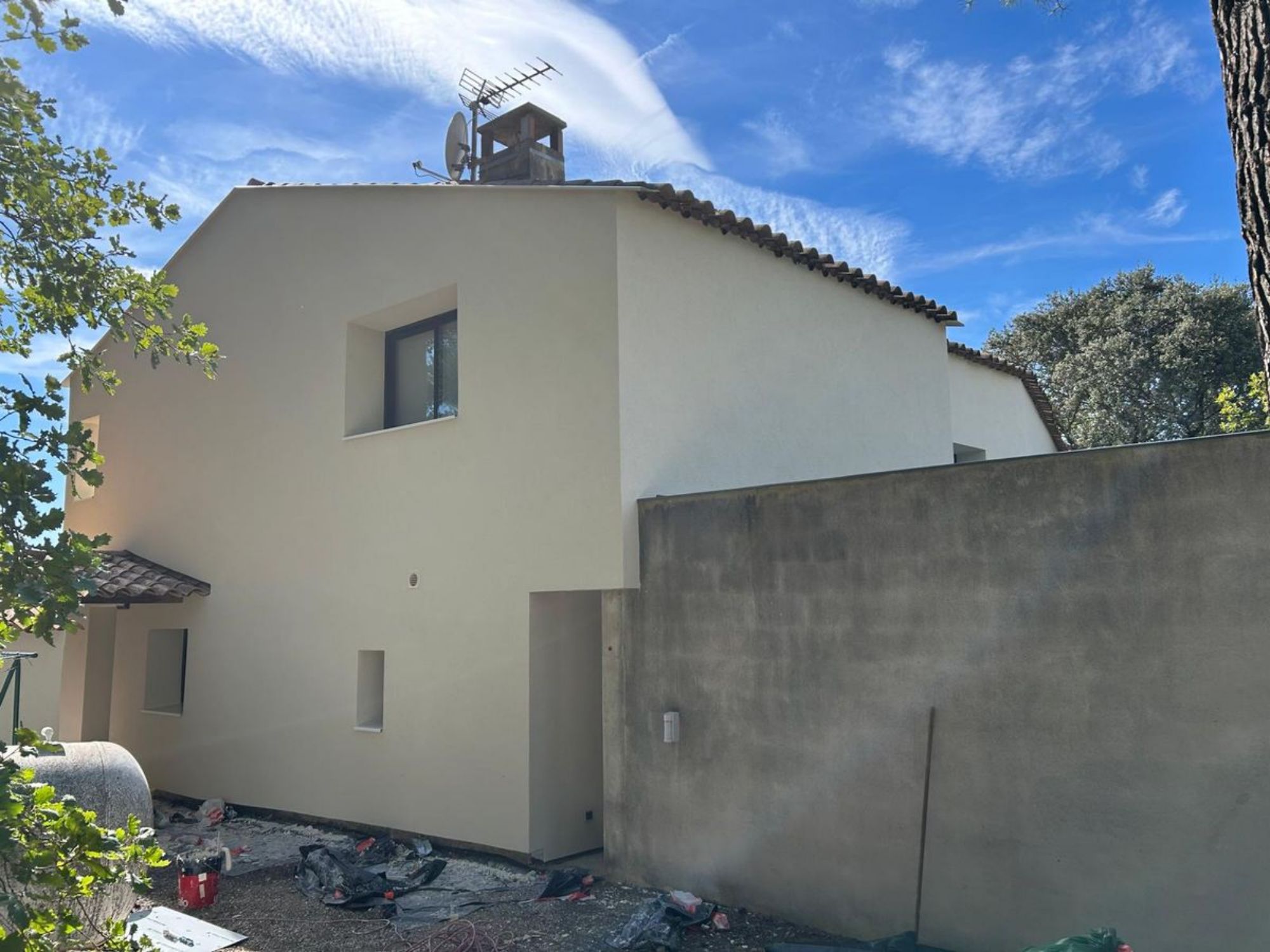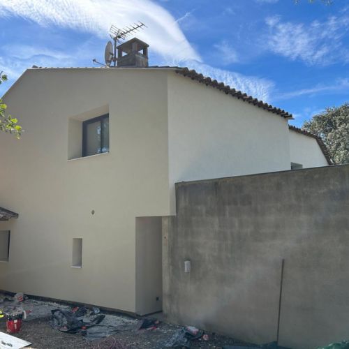 Ce chantier est l'exemple parfait d'une rénovation globale réussie : nous avons réalisé une isolation par l'extérieur (ITE) complète, couplée à un ravalement de façade esthétique.